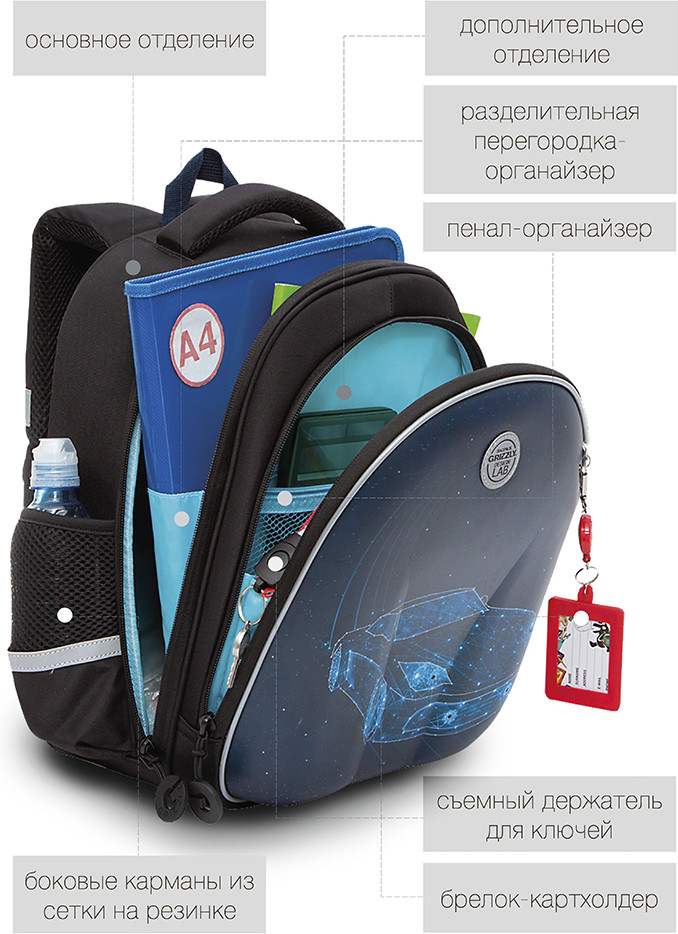 Grizzly Ранец школьныйВ данный момент этот товар отсутствует в продаже. Возможно, у нас найдется аналогичный или похожий товар здесь. Серия: Raz Формованный ранец «Grizzly» серии «Raz» для детей школьного возраста с анатомической спинкой. Жесткая конструкция ранца, анатомическая спинка, лямки анатомической формы и нагрудная стяжка равномерно распределяют вес по спине ребенка. Конструкция ранца не деформируется при нагрузке и создает надежную защиту содержимого. У ранца два отделения, укрепленное дно на резиновых ножках, удобная ручка, дополнительная ручка-петля для и два вместительных боковых кармана для бутылочек с водой. Основное отделение состоит из трех отсеков для распределения учебных пособий форматом А4. Дополнительное переднее отделение оснащено съемным держателем для ключей и тремя карманами. Двунаправленные молнии с брендированными пуллерами на замках позволяют легко открывать и закрывать ранец. Светоотражающие элементы с 4-х сторон обезопасят ребенкаМатериал ранца с водо- и грязеотталкивающей пропиткой. К ранцу прилагается обучающая брошюра по программе «GrizzlyЗдоровая Спина» и фирменный картхолдер «Grizzly». |