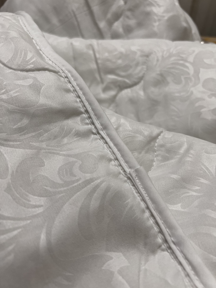 Одеяло понравилось. Размер соттветствует. Швы ровные и аккуратные. Во время сна не шуршит и скомкывается в пододеяльнике. Период использования - демисезонье. Не жарко и не холодно. В самый раз!