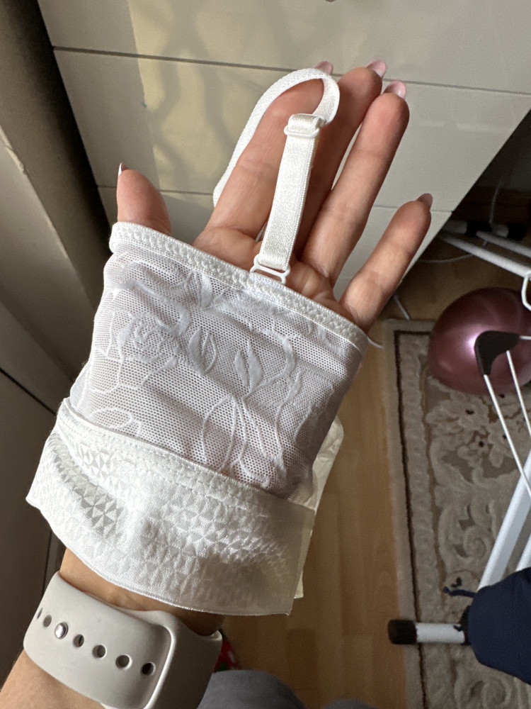 Очень красивое бюстье, размер соответствует, тонкий паралон, как на фото: красиво, держит грудь и нигде не давит. Качество тоже хорошее, видно, что не какой-то ширпотреб. Под грудью широкая резинка. Бретели регулируются. Короче, мне очень понравился топ