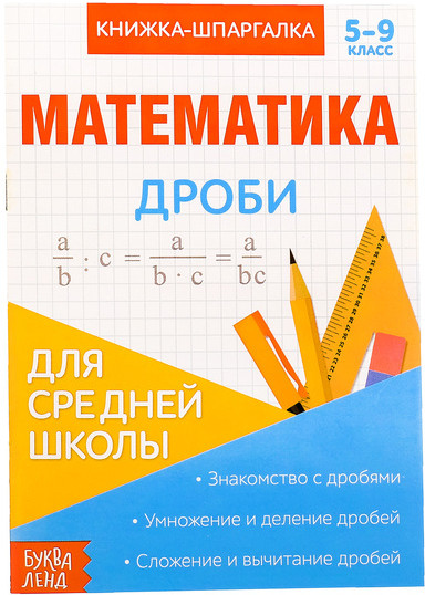 Шпаргалка по математике «Дроби»В данный момент этот товар отсутствует в продаже. Возможно, у нас найдется аналогичный или похожий товар здесь. Серия: Книжки-шпаргалки Буква-Ленд Книжка-шпаргалка по математике подходит для учащихся средней школы. Пособие пояснит ребёнку понятие «дроби», а также научит складывать, вычитать, умножать и делить их. |