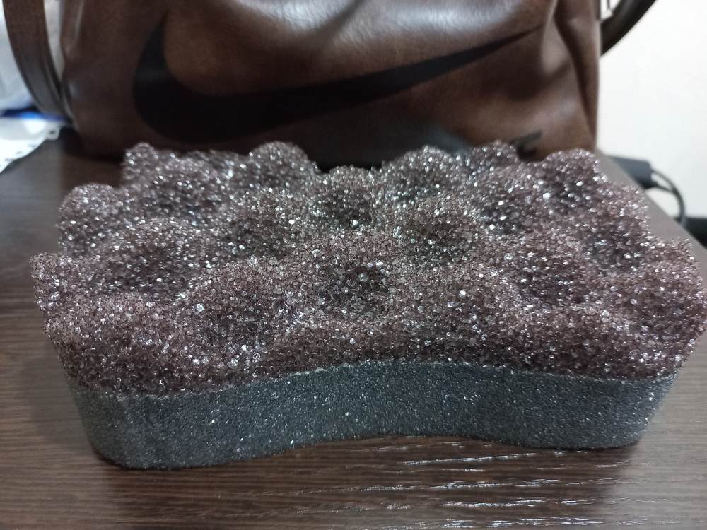 отличная губка, необычный цвет. хоть и мужская, я ею пользуюсь. брала мужу, забрала себе😄 не крошится, хорошо мылится