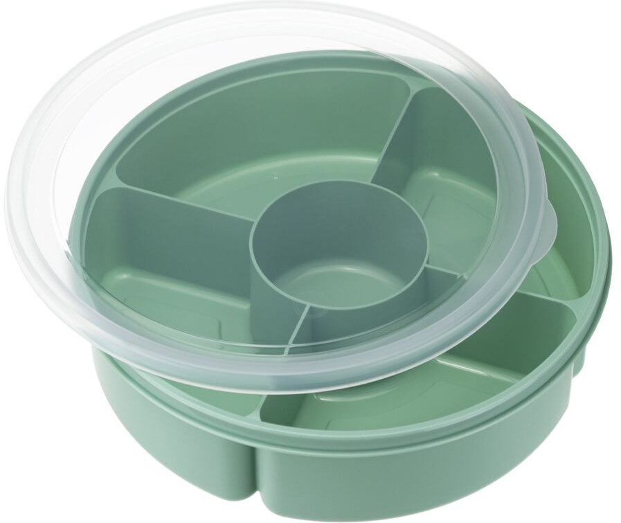 Очень удобная менажница. Сухофрукты в ней не сохнут, т к есть крышка. Рекомендую!