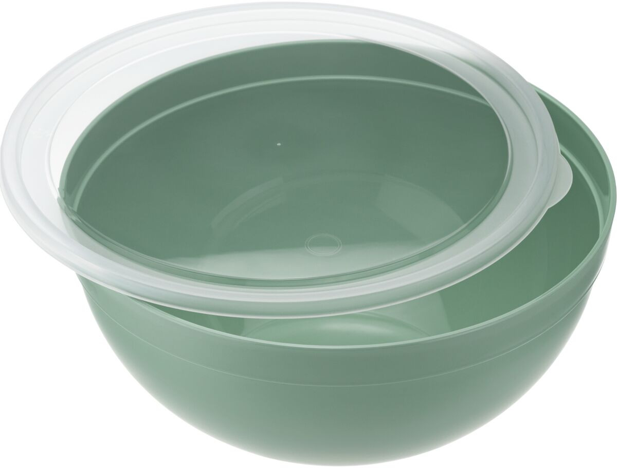 Устойчивая большая миска приятного цвета. хороший пластик, снаружи матовый, внутри гладкий, крышка закрывается плотно, но надо приспособиться.