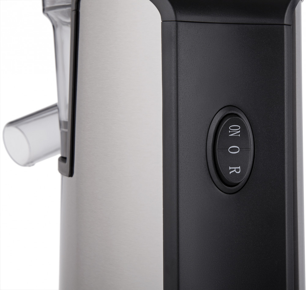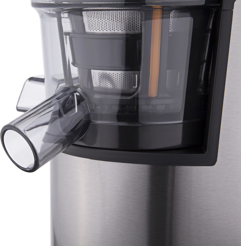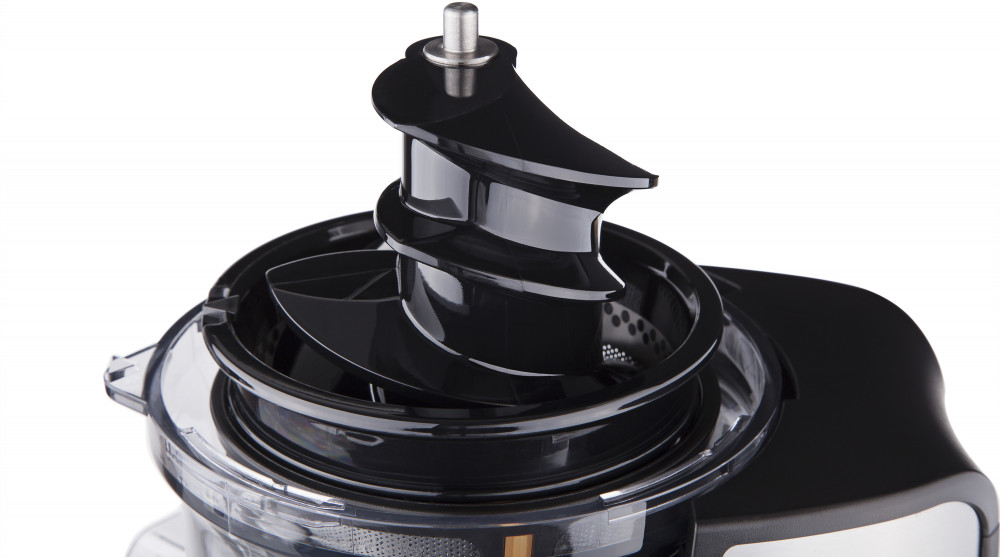 Соковыжималка оснащена двигателем с мощностью 200 Вт и защитой от перегрева. Он обеспечивает тихий и качественный отжим. За счет низкоскоростной работы (90 оборотов в минуту), сок не успевает окислиться и сохраняет все свойства, витамины и полезные вещества. Функция реверса обеспечивает максимальную производительность во время приготовления напитков.