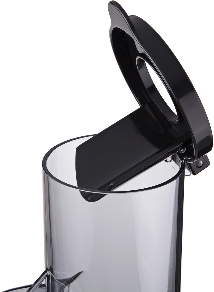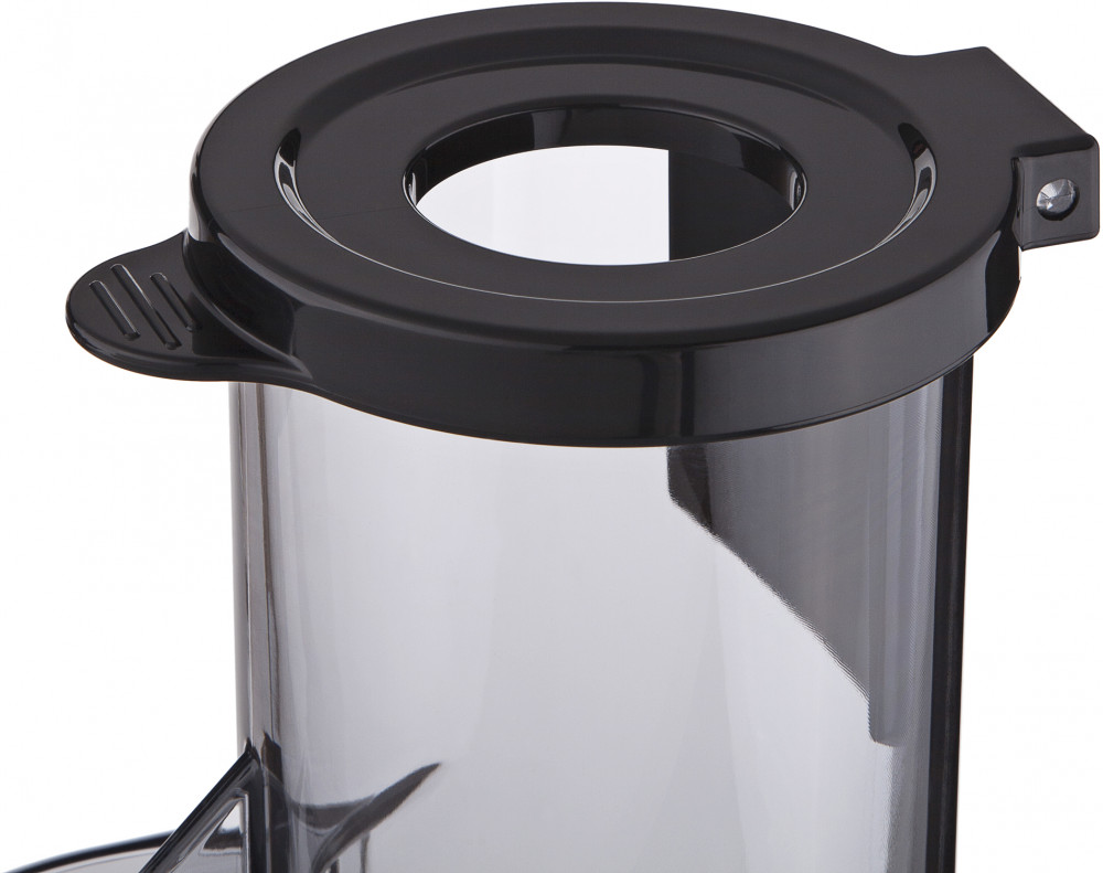 Для экономии времени приготовления, соковыжималка JEG-1330SL получила увеличенное отверстие для загрузки ингредиентов и удобный толкатель. Основная колба оснащена специальными резиновыми прокладками для плотной установки. Шнек и очищающий ободок выполнены из прочного поликарбоната, а сито из качественной перфорированной стали. Сток для сока закрыт клапаном с системой «Капля-стоп». Для сока и жмыха предусмотрены две отдельностоящие чаши с объемом 0,6 л. Конструкция и все детали легко моются с помощью жесткой щетки, которая входит в комплект.