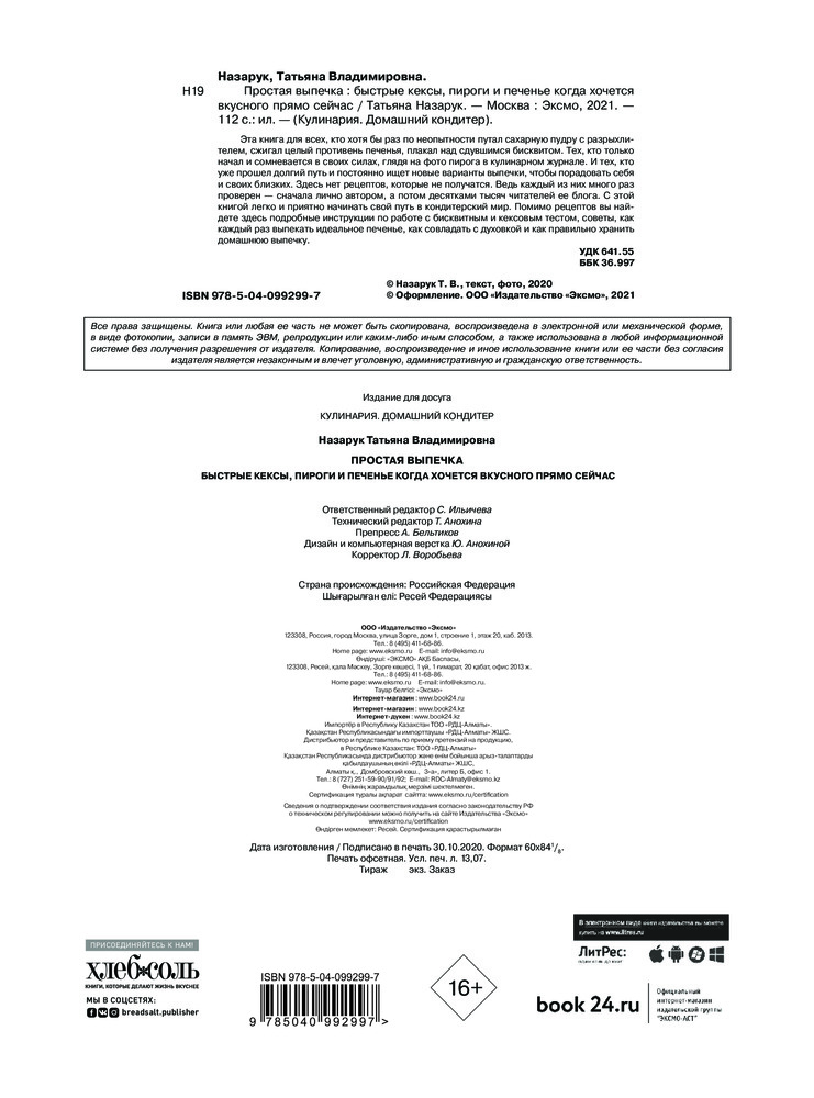 Простая выпечка. Быстрые кексы, пироги и печенье когда хочется вкусного прямо сейчасВ данный момент этот товар отсутствует в продаже. Возможно, у нас найдется аналогичный или похожий товар здесь. Серия: Кулинария. Домашний кондитер Эта книга для всех, кто хотя бы раз по неопытности путал сахарную пудру с разрыхлителем, сжигал целый противень печенья, плакал над сдувшимся бисквитом. Тех, кто только начал и сомневается в своих силах, глядя на фото пирога в кулинарном журнале. И тех, кто уже прошел долгий путь и постоянно ищет новые варианты выпечки, чтобы порадовать себя и своих близких. |