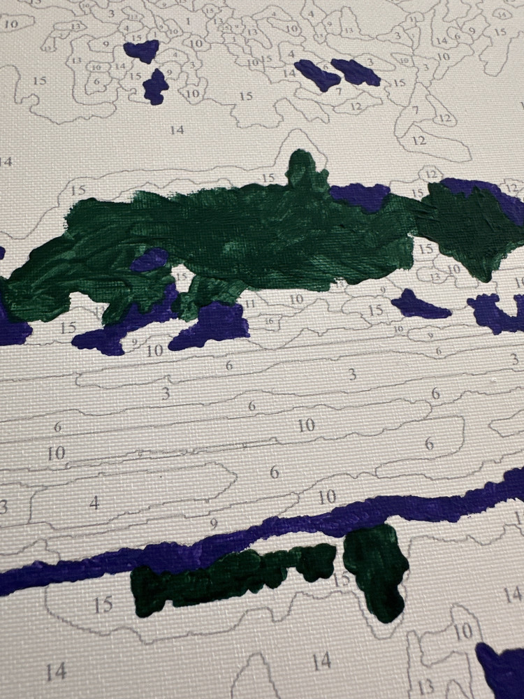 Краска жидкая даже при 2-3 слойном нанесении белый холст виден все равно(наглядно видно на фото)