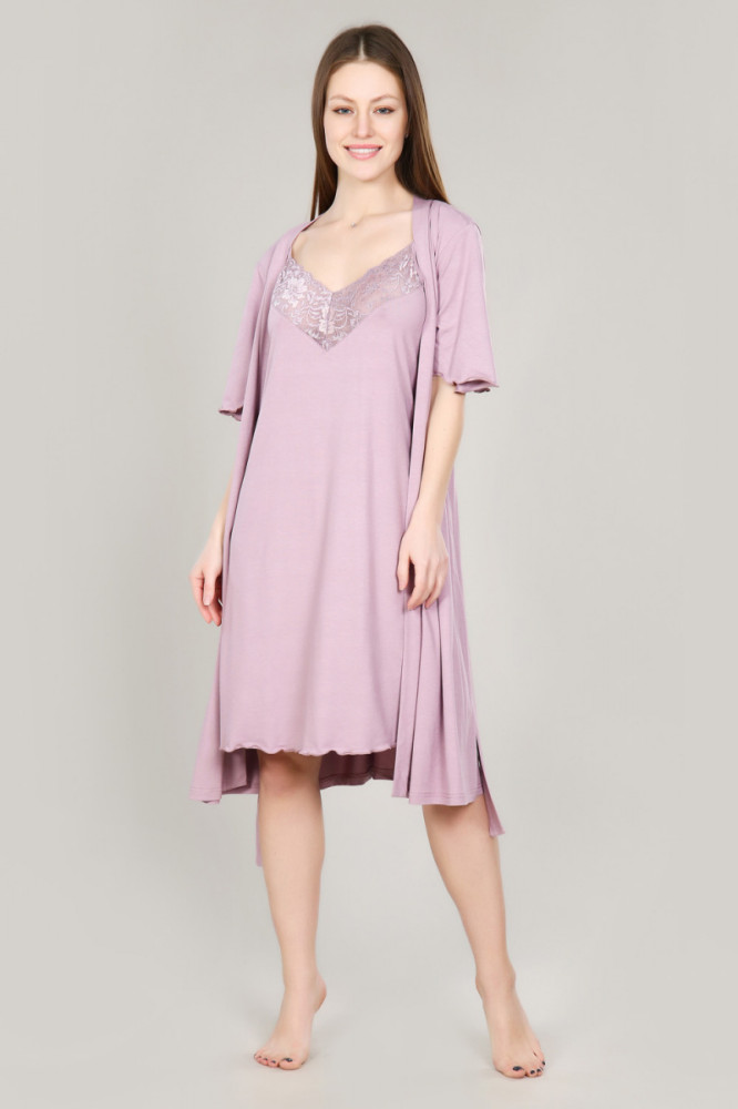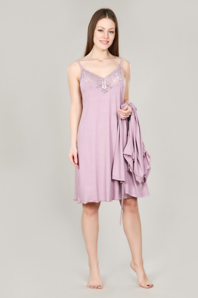 Комплект очень понравился, сразу стала пользоваться, сорочка для наших алматинских летних ночей очень подошла, в ней не жарко и халатик на утро очень удобно, пришила на уровне талии 2 пуговки и обхожусь без пояса (ну это уже возрастное - всё что стягивает мешает)
