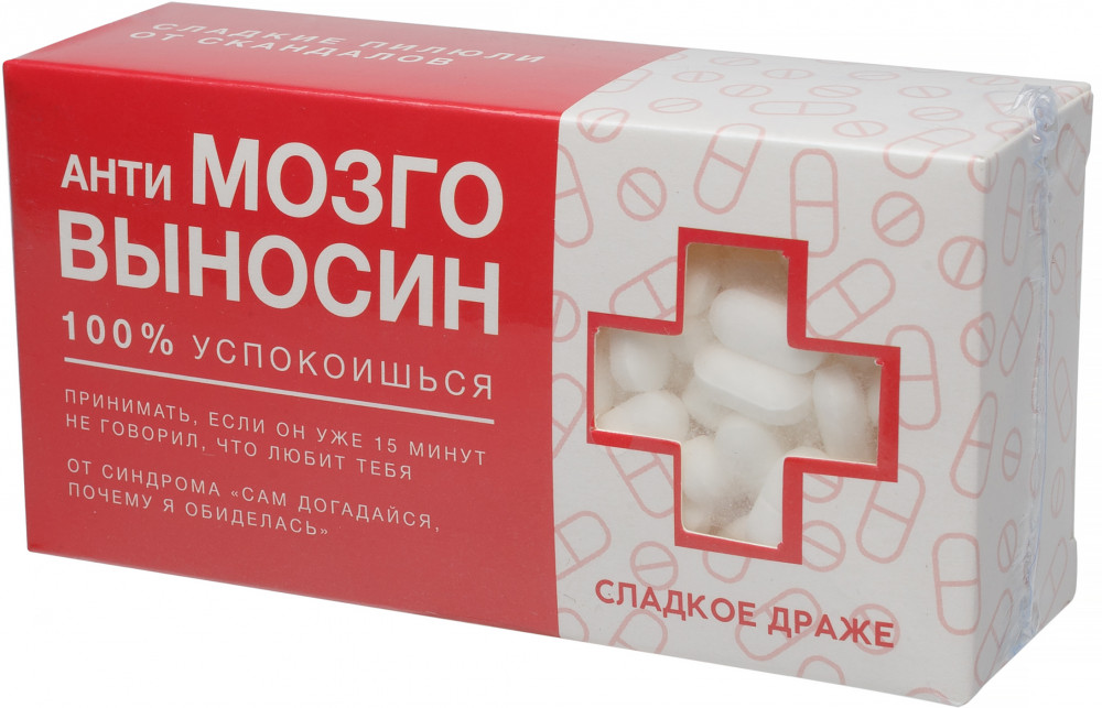 Фабрика счастья Конфеты-таблетки «Выносин»В данный момент этот товар отсутствует в продаже. Возможно, у нас найдется аналогичный или похожий товар здесь. 100% успокоишься. |