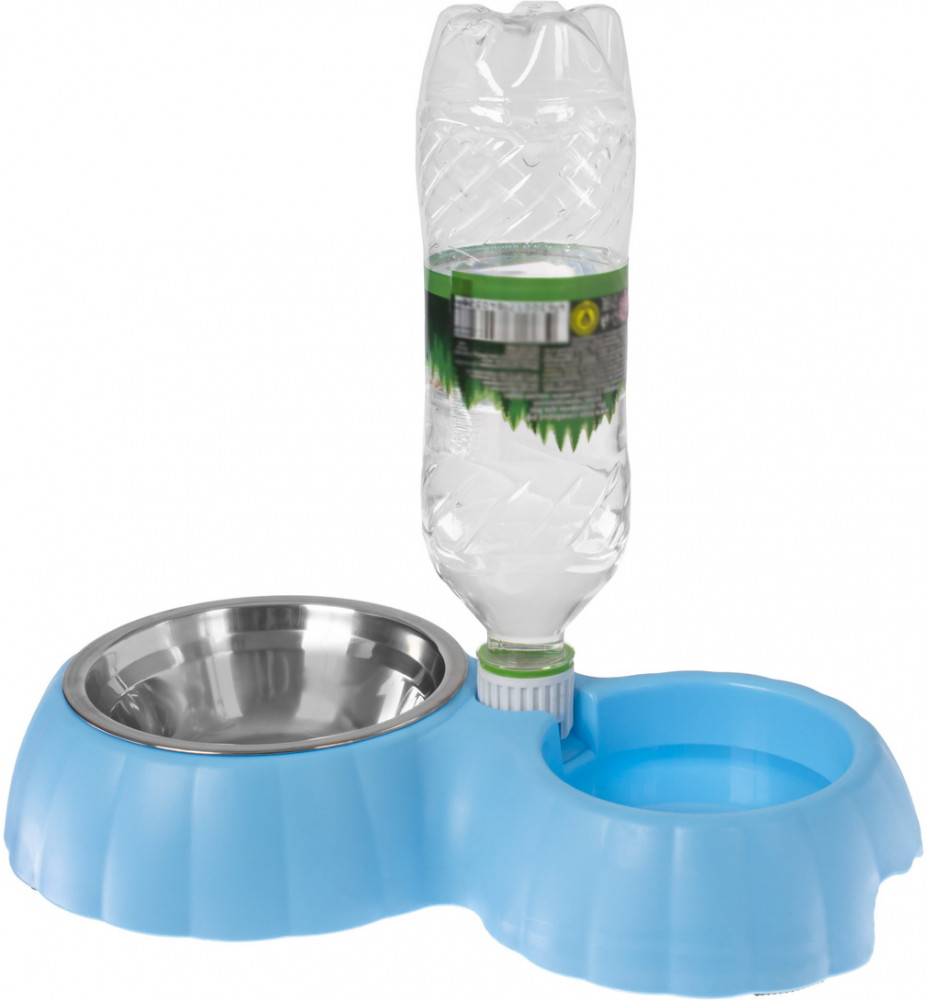 Миска для животных с автоматической поилкой — настоящая находка для заботливых хозяев. С ней не нужно постоянно подливать воду в чашку — устройство для автоматической подачи воды сделает это за вас. Вам нужно будет всего лишь закрепить у основания миски пластиковую бутылку со стандартным горлышком. Устройство не позволяет воде пролиться мимо, сохраняет её чистоту и своевременно наполняет миску. Съёмная чаша из нержавеющей стали может использоваться в качестве миски для сухого или влажного корма. Детали миски легко снимаются, благодаря чему ее легко мыть. Универсальный размер подходит как для собак небольших размеров, так и для кошек.