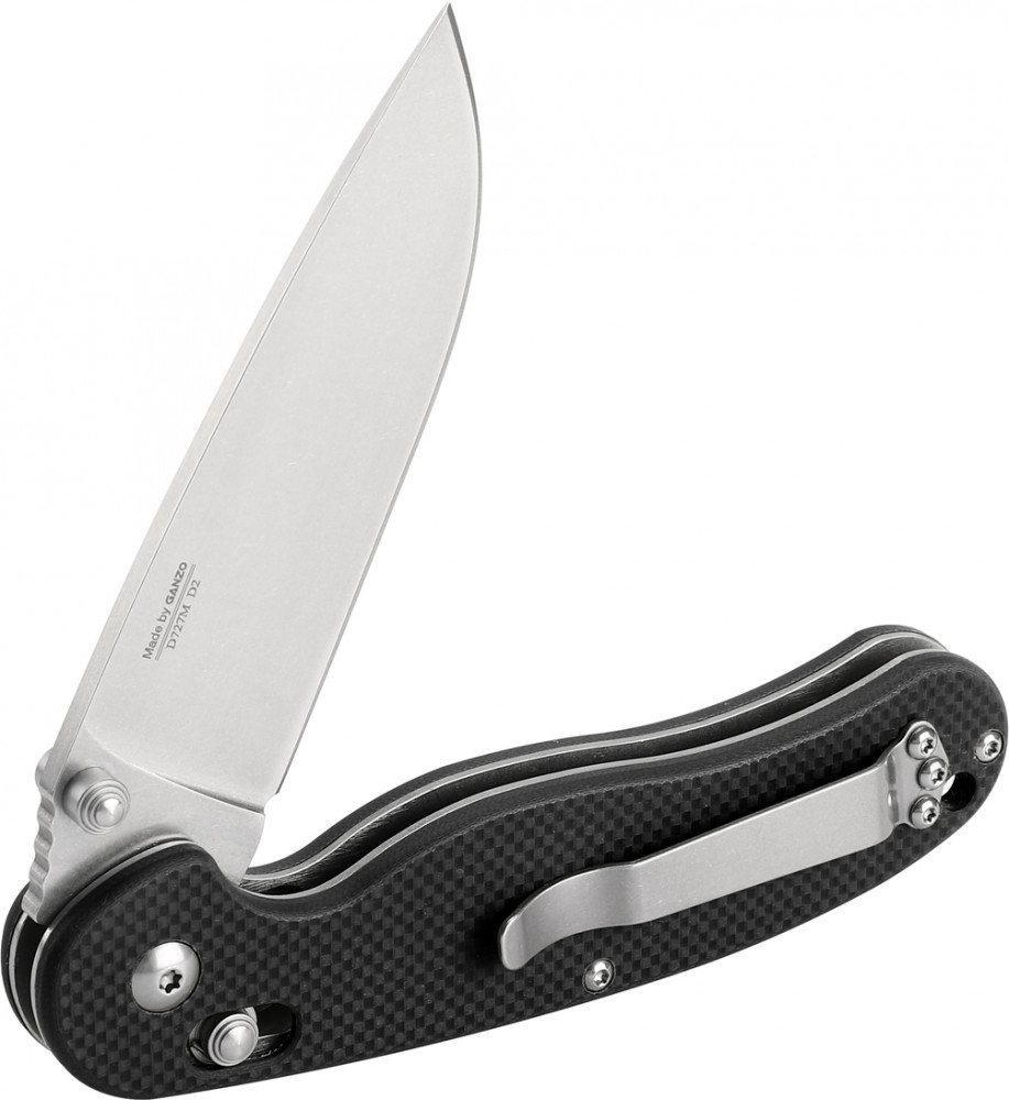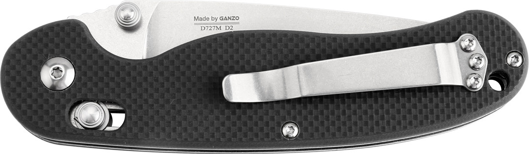 Нож D727 — прочный, не прихотлив в уходе, практичен в использовании. Теперь нож Ganzo стал еще совершеннее за счет использования стали D2 и добавления подшипников в механизм замка типа Axis-lock. Этот замок обеспечивает легкое открытие и закрытие лезвия, его надежную фиксацию. Подшипники добавили плавности ходу клинка и повысили износоустойчивость механизма.