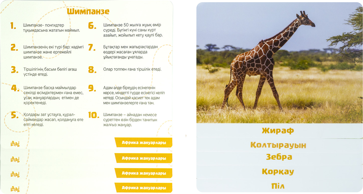 Осы карталармен тек қана кішкентай баланы емес арнайы көмекті қажет ететін балалармен жұмыс жасаған да керемет! Қазақ тілінде таптырмайтын нәрсе! Көбірек осындай сияқты балаларды дамытатын, балаларға таныстыратын материалдар шығарсаңыз жақсы болар еді!