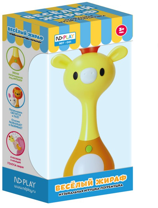 ND Play Погремушка музыкальная «Весёлый жираф»В данный момент этот товар отсутствует в продаже. Возможно, у нас найдется аналогичный или похожий товар здесь. Музыкальная игрушка-погремушка — незаменимый помощник для мамы и лучший друг для малыша. Она отлично успокаивает грудного ребенка, если он чем-то расстроен, а нежные детские мелодии прекрасно его убаюкивают, как колыбельная. Погремушки выполнены в виде домашних и экзотических животных для знакомства малыша с различными представителями животного мира. Развивающая игрушка-погремушка познакомит малыша с различными мелодиями и разными звуками окружающего мира. Игрушка светится в такт музыке, а ушки погремушки сделаны из мягкого силикона, безопасного для ребенка. Лучшее развлечение в поездке, на прогулке, в гостях и дома! |