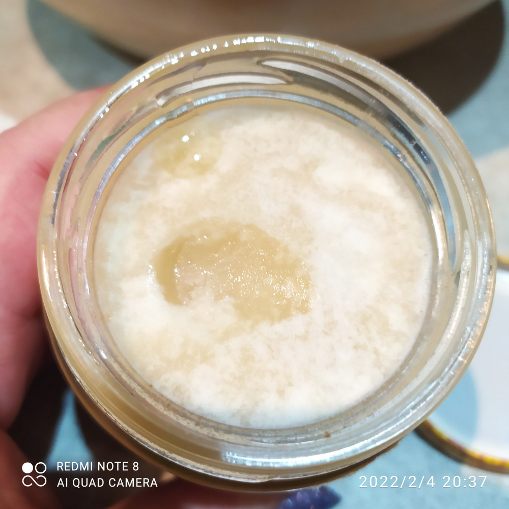 К этому мёду у меня нет вопросов. Хоть он и прошлого года сбора). (дата указана 27.07.2021), он был разлит в тару свежим и правильно застыл. Я люблю застывший мёд. Вкус очень приятный.
