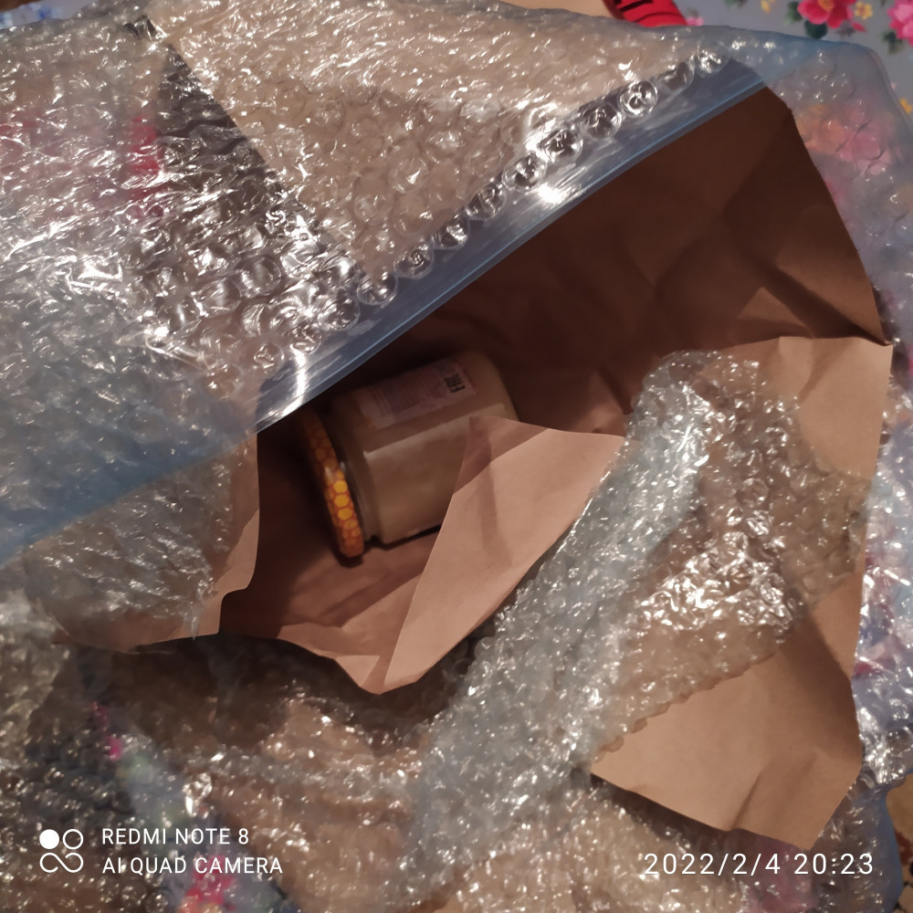Вкусный, белый, твёрдый, мёд. Но, с мелкими крупиночками, поэтому на любителя. Упаковка заслуживает отдельных 🌟🌟🌟🌟🌟! Заказ был самовывозом, а упаковано было, как для почты. На фото 2 и 3 упаковка стеклянной баночки с мёдом👍