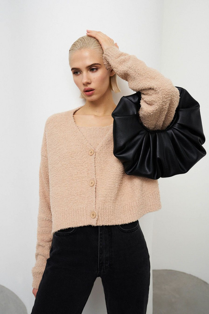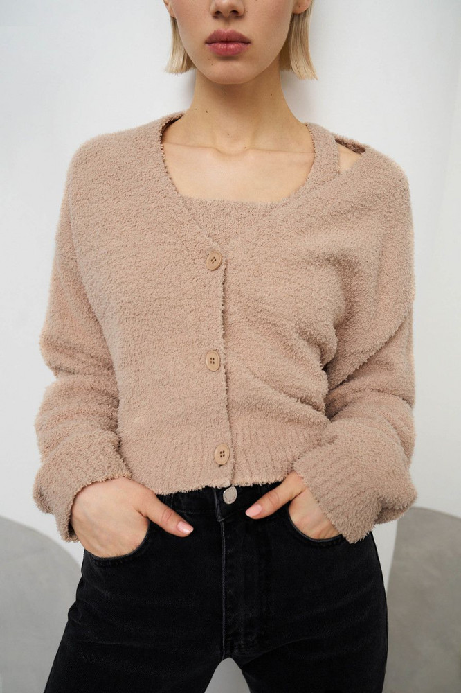 Очень приятный кардиган- мягкий, уютный. Силуэт- Оверсайз. Всего два размера , поэтому лучше брать меньший. Пришлось отказаться из за размера- велик
