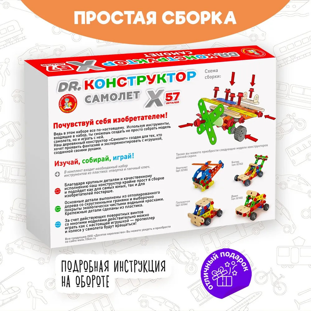 Десятое королевство Конструктор деревянный «Самолёт»-35% +66