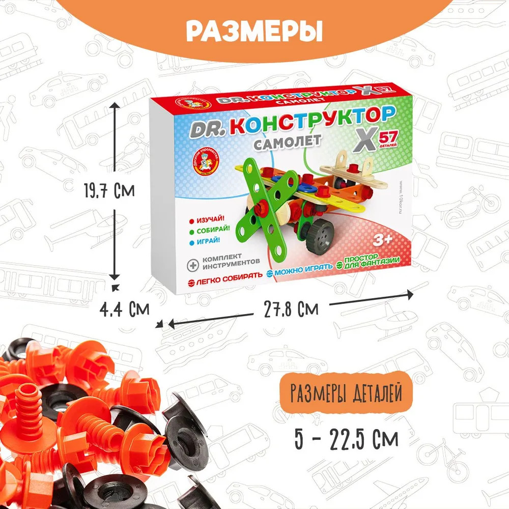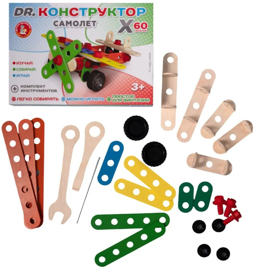 💳 Оплатить за товар можно при получении 🇰🇿 Есть бесплатная доставка по Казахстану от 1 дня 🎁 Копите бонусы с каждой покупки Покажите ребёнку, как работать с ключом и отвёрткой. Схема соединения деталей изображена на коробке. Конструктор прост в сборке, он подойдёт как для самых маленьких, так и для детей постарше. Основные детали выполнены из древесных материалов и тщательно отшлифованы. Ребёнок не поранится и не подцепит занозу. За счёт действующих поворотных винтов пропеллер и колёса самолёта будут вращаться. |
