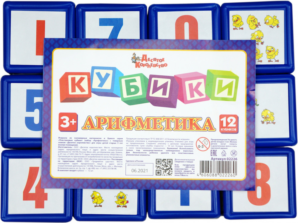 Десятое королевство Кубики «Арифметика»В данный момент этот товар отсутствует в продаже. Возможно, у нас найдется аналогичный или похожий товар здесь. В набор входит 12 кубиков, на которых изображены цифры, математические знаки и цыплята в количестве, соответствующем цифре. Ребята в игровой форме обучатся простейшим арифметическим действиям. |