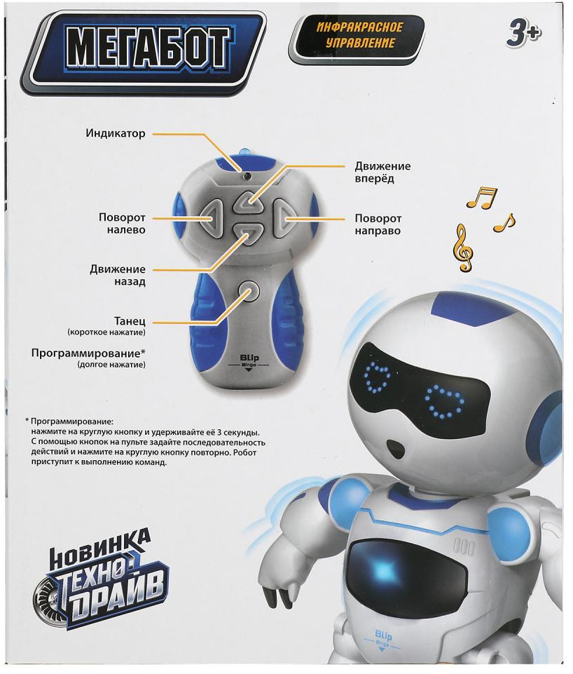 Технодрайв Робот радиоуправляемый «Мегабот»В данный момент этот товар отсутствует в продаже. Возможно, у нас найдется аналогичный или похожий товар здесь. Робот на пульте управления «Мегабот» ТМ «Технодрайв» станет прекрасным подарком для маленького любителя робототехники. Вашему ребёнку обязательно понравится этот яркий и современный робот. Такая игрушка не только развлечёт малыша, но и привьёт ему интерес к науке. Компактный размер позволяет повсюду брать робота с собой. |