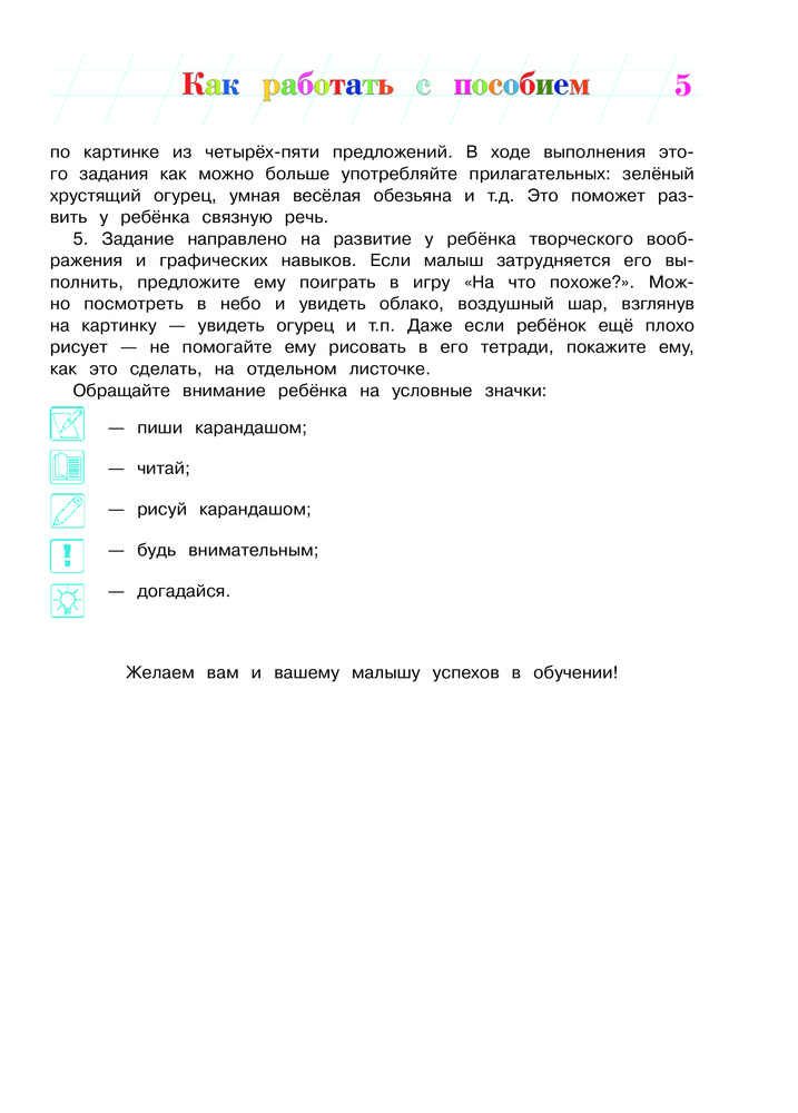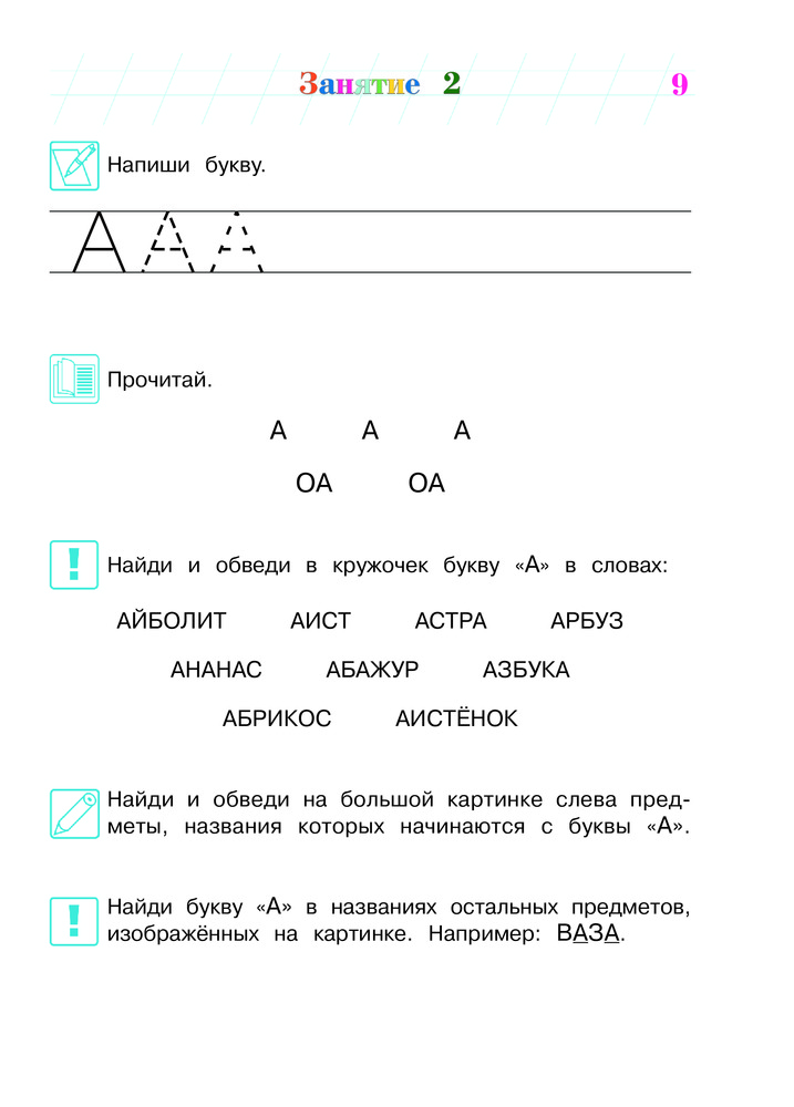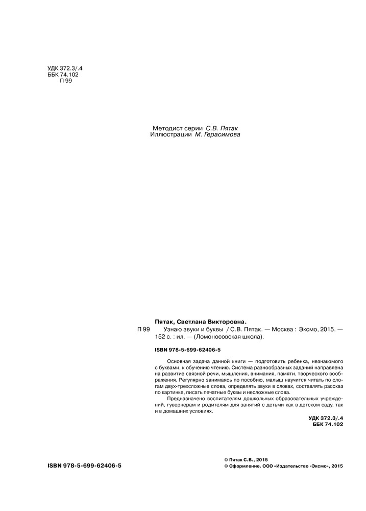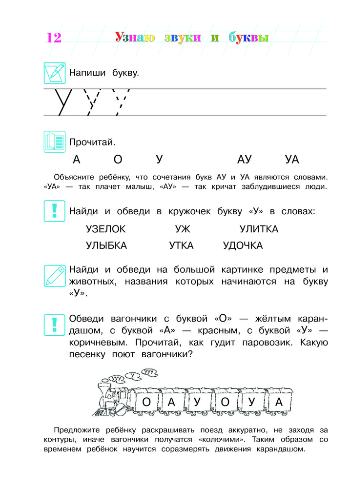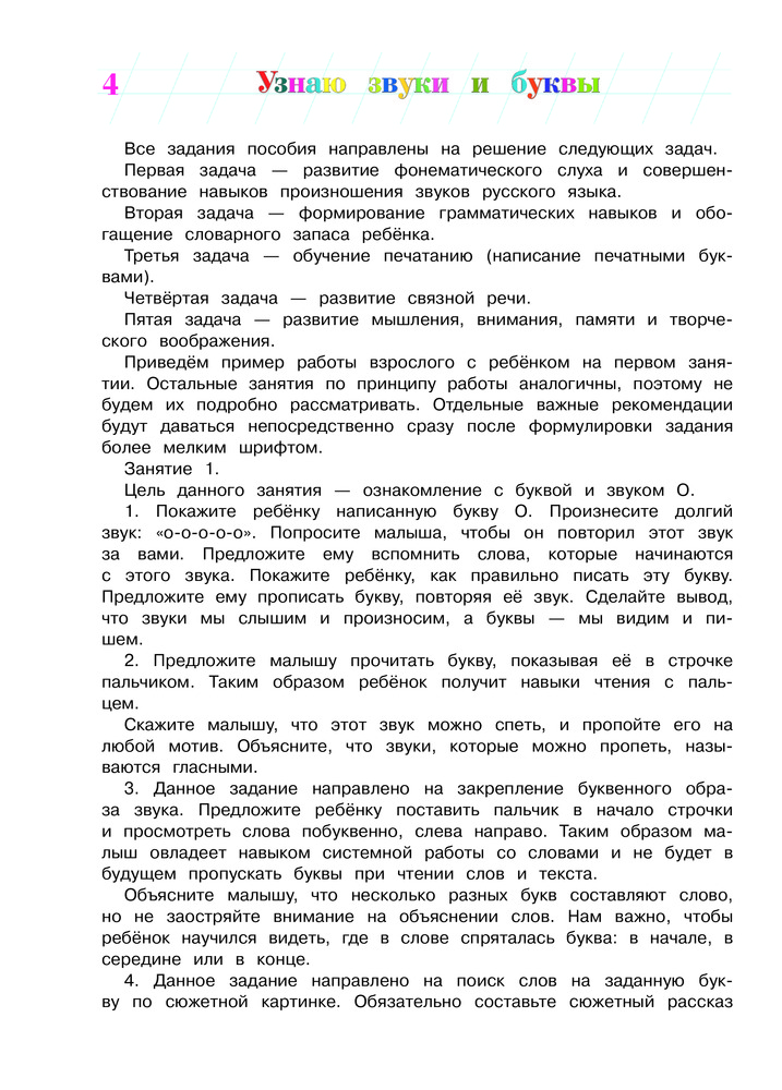 Отличная книга! Сыну 3,5 года, уже знает все гласные буквы. Интересные задания, которые ребенок выполняет с удовольствием. Один маленький минус - буквы расположены не в том порядке, в каком хотелось бы, но из этого минуса вытекает большой плюс - привязки к последовательности изучения букв в книге нет! Вообще я в восторге от книг данной серии.