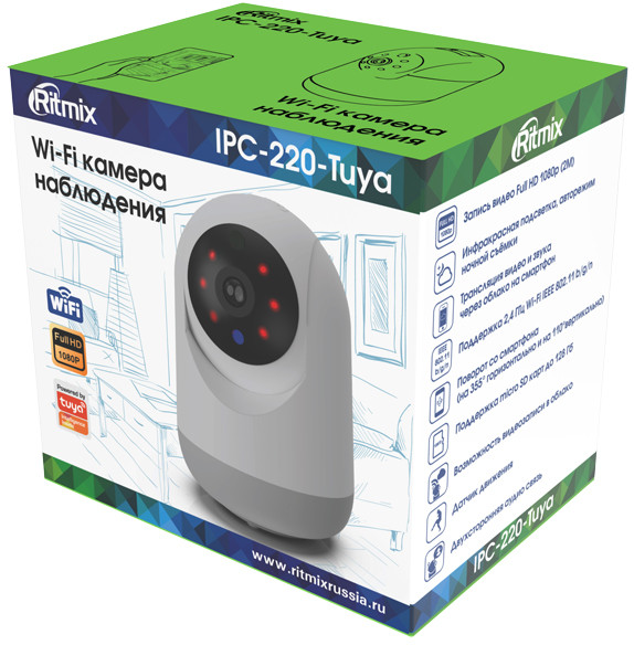 Wi-Fi камера наблюдения Ritmix IPC-220-Tuya будет надёжным помощником в круглосуточной заботе о безопасности Ваших близких, Вашего дома, Вашего офиса.