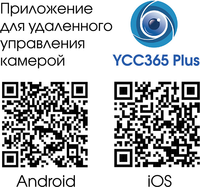 Установив бесплатное приложение YCC365 Plus и зарегистрировав в нём учетную запись и Вашу камеру, Вы получите простой и удобный доступ к удаленному управлению Wi-Fi камерой со смартфона или планшета: поворот объектива по горизонтали и по вертикали, приближение изображения (поддержка функционала PTZ), подключение к трансляции в реальном режиме времени, просмотр ранее записанных на карту памяти видео, получение «тревожных уведомлений» при обнаружении движения.