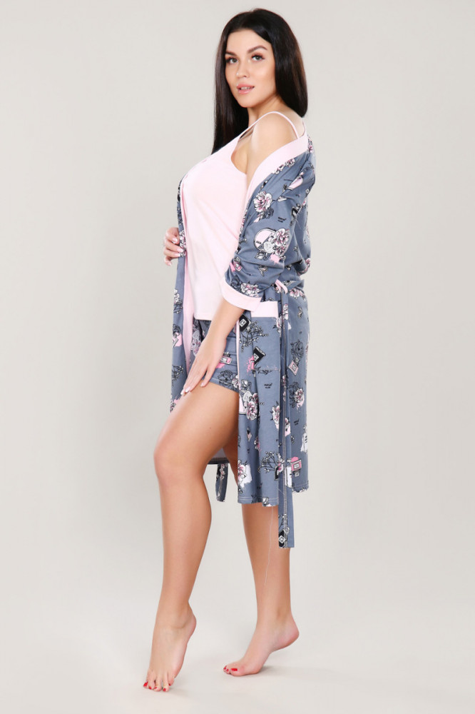 Отличный комплект : халатик, маечка, но шортики впритык . Покупала на размер больше.