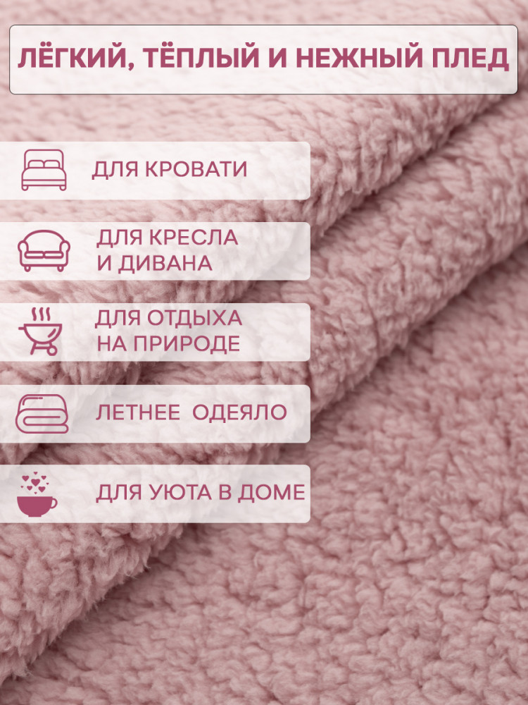 Плед прекрасный! Мягкий, нежный, очень приятный на ощупь. Лежать на нем огромное удовольствие. Также он очень тёплый. Из минусов только то, что с него вначале лезут всякие шерстинки и ниточки, но после стирки все хорошо. Рекомендую!