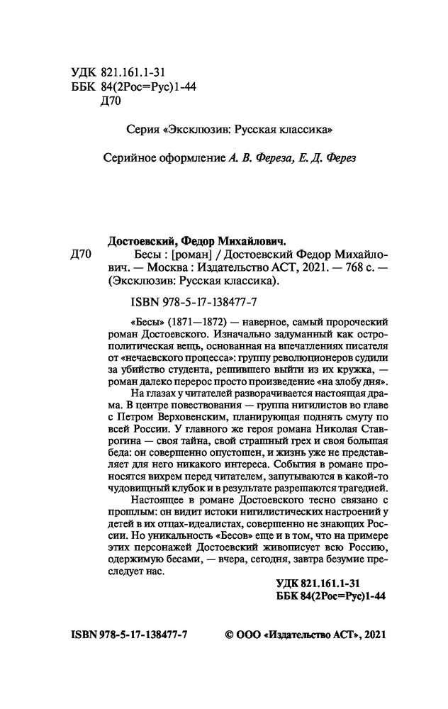 Бесы-20% +49 сильный слог проработанные персонажи скучный сюжет
