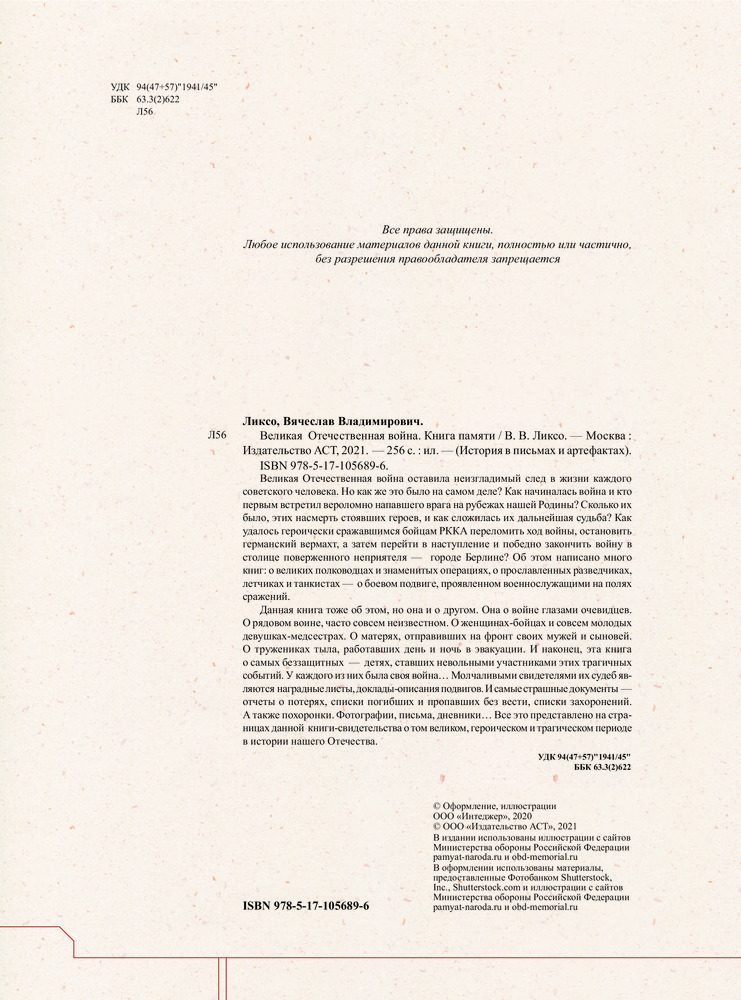 💳 Оплатить за товар можно при получении 🇰🇿 Есть бесплатная доставка по Казахстану от 1 дня 🎁 Копите бонусы с каждой покупки Серия: История в письмах и артефактах Великая Отечественная война оставила неизгладимый след в жизни каждого советского человека. Но как же это было на самом деле? Как начиналась война и кто первым встретил вероломно напавшего врага на рубежах нашей Родины? Сколько их было, этих насмерть стоявших героев, и как сложилась их дальнейшая судьба? Как удалось героически сражавшимся бойцам РККА переломить ход войны, остановить германский вермахт, а затем перейти в наступление и победно закончить войну в столице поверженного неприятеля — городе Берлине? Об этом написано много книг: о великих полководцах и знаменитых операциях, о прославленных разведчиках, летчиках и танкистах — о боевом подвиге, проявленном военнослужащими на полях сражений. |