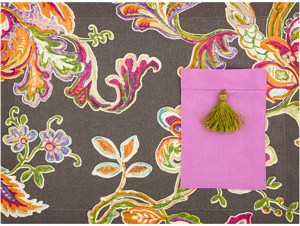 Плейсметы защищают скатерти или стол от загрязнений и повреждений, от скольжения посуды, а также выполняют эстетическую функцию. Часто цветные плейсметы размещаются на белых скатертях, поддерживая цветовое решение всего помещения. |