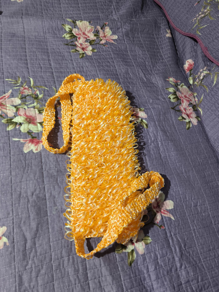 пришла моя мочалочная пряжа, буду вязать мочалку. цвет сочный. рекомендую к покупке. спасибо.