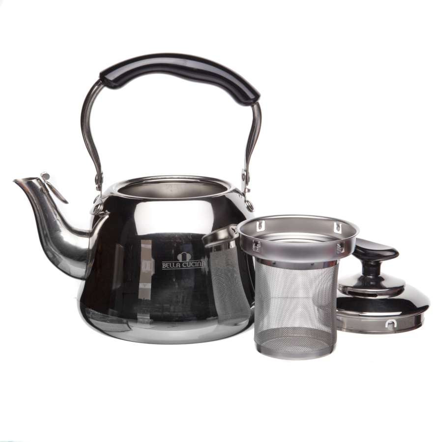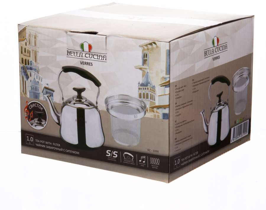 Bella Cucina Чайник заварочный с ситечкомВ данный момент этот товар отсутствует в продаже. Возможно, у нас найдется аналогичный или похожий товар здесь. Чайник заварочный с ситечком. Фильтр для заварки из нержавеющей стали. Эргономичная ненагревающаяся ручка. Капсулированное индукционное дно. Зеркальная полировка. |