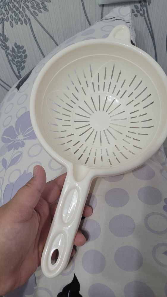 Керемет дуршлаг, дәл осындай алғым келген еді, флипте бары өте жақсы болды. Дәл осындайды каспиден екі рет алған едім, екеуі де сынық болып келді. Өте үлкен, тесіктері кішкентай, күріш, қарақұмықты да жууға әбден болады. Астында тіреп тұратыны бар, жәй өзін қойп қойса, құламайды. Көп-көп рақмет