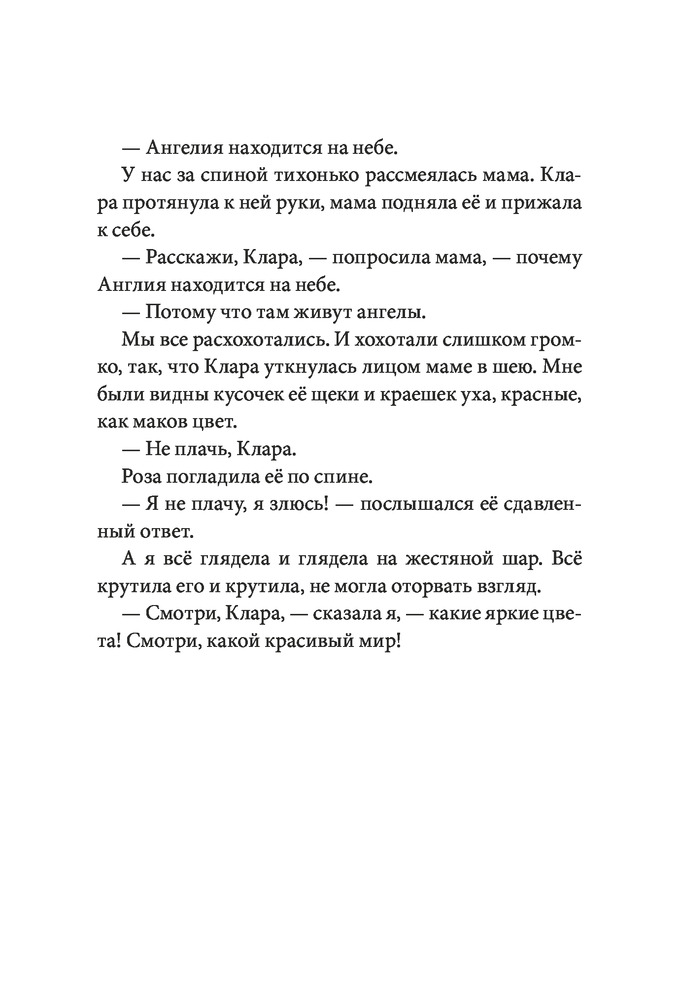 Это многослойная история об искренней и немного наивной девочке. С первой страницы читатель, и маленький, и взрослый, начинает сопереживать героям. Настроение книги удивительно тонко передают одноцветные рисунки Шарлотты Пейс.