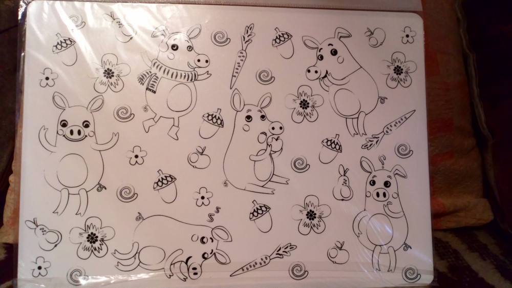 Не очень хорошо пропечатан рисунок. Сам коврик - это гибкий пластиковый лист, точь-в-точь как дощечка для лепки, только шершавая. Размером немного больше формата А4.