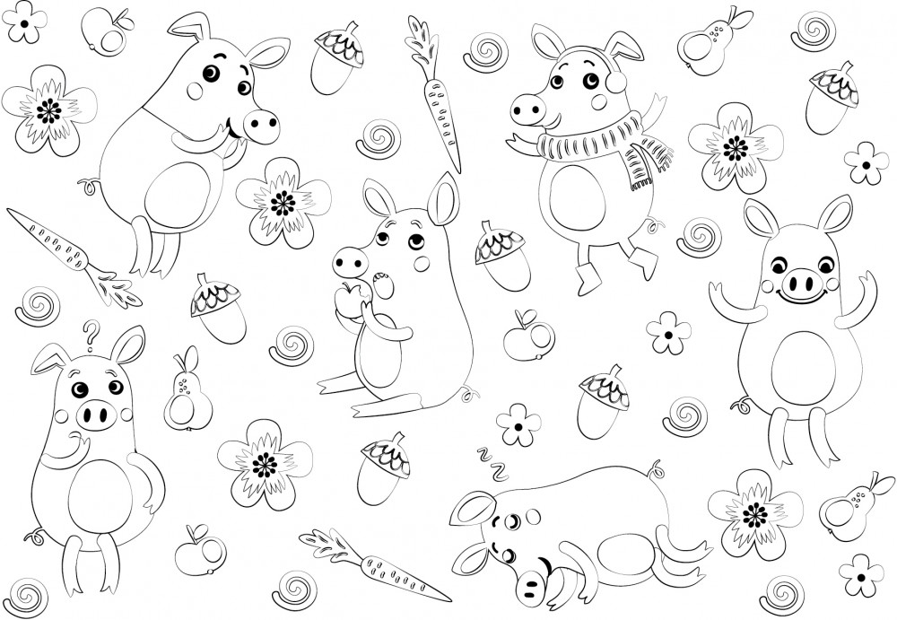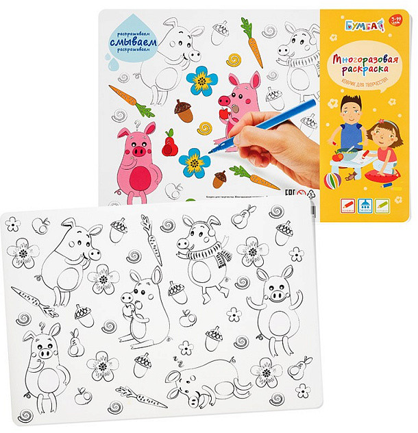 Коврик для творчества соединен с раскраской, чтобы ребенок мог рисовать и развивать художественные навыки. На коврике уже есть контуры будущей картинки — забавные хрюшки и их любимые предметы. Черно-белое изображение можно превратить в цветное, просто раскрасив коврик фломастерами или карандашами. Не бойтесь испортить работу! Краски всегда можно стереть и начать рисовать заново.