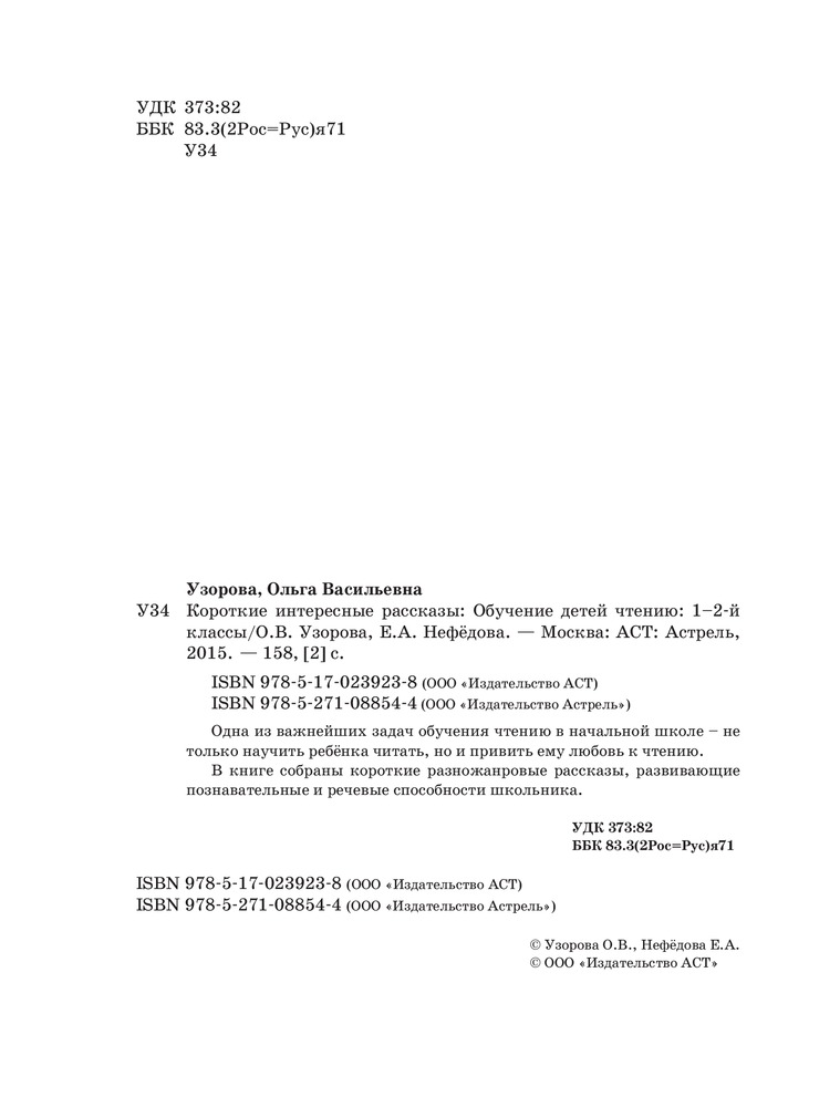 Короткие интересные рассказы. Обучение детей чтению. 1-2 классыВ данный момент этот товар отсутствует в продаже. Возможно, у нас найдется аналогичный или похожий товар здесь. Серия: Для начальной школы Одна из важнейших задач обучения чтению в начальной школе — не только научить ребенка читать, но и привить ему любовь к чтению. В книге собраны короткие разножанровые рассказы, развивающие познавательные и речевые способности школьника. |