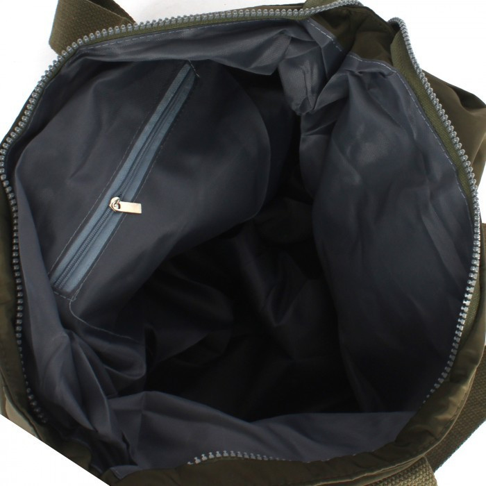 Отличная сумка для разнопланового использования. Например, я ноутбук диагональю 15,6 в ней переношу, может он не так защищен, как специальных сумках, но зато удобно носить на плече. Без внутренних отделов, есть лишь внутренний кармашек на молнии. Подкладочная ткань плотная. Снаружи два кармана на молнии с лицевой и изнаночной стороны и два отдела на резинках по бокам. Ткань типа плащевки, но поплотнее, воду не отталкивает. Пошив без нареканий. Купила сначала цвета хаки, после синего.