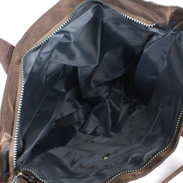 Отличная сумка для разнопланового использования. Например, я ноутбук диагональю 15,6 в ней переношу, может он не так защищен, как специальных сумках, но зато удобно носить на плече. Без внутренних отделов, есть лишь внутренний кармашек на молнии. Подкладочная ткань плотная. Снаружи два кармана на молнии с лицевой и изнаночной стороны и два отдела на резинках по бокам. Ткань типа плащевки, но поплотнее, воду не отталкивает. Пошив без нареканий. Купила сначала цвета хаки, после синего.