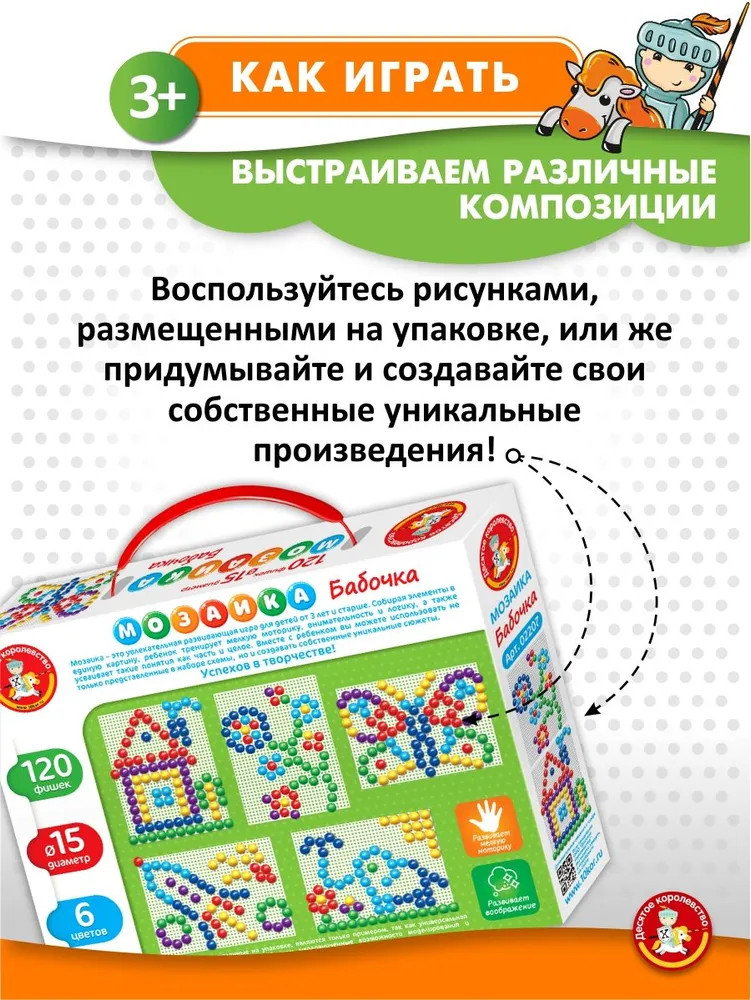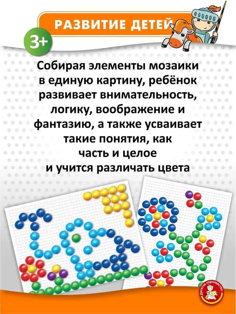 Мозаика — это увлекательная обучающая и развивающая игра для самых маленьких. Яркие картинки заинтересуют вашего непоседу. В процессе игры ребенок освоит цвета, разовьет координацию движений и мелкую моторику. Мозаика рассчитана на детей начиная с 3 летнего возраста.  |