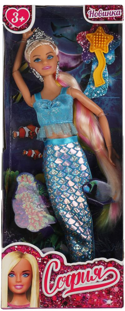 Карапуз Кукла «София-русалка»В данный момент этот товар отсутствует в продаже. Возможно, у нас найдется аналогичный или похожий товар здесь. Серия: София и Алекс Кукла София станет прекрасным подарком для вашей принцессы. Прекрасная русалка София одета в блестящий голубой топ с оборкой, а также серебристые серьги и корону в тон. Её хвост с красивым узором голубого и сребристого цветов красиво блестит и переливается. Одежду легко снять и надеть. С такой модной куклой девочке будет интересно и весело играть: благодаря тому, что руки и ноги куклы подвижны, им можно придать любое положение. У Софии длинные красивые радужные волосы, которые хозяйка куклы может заплетать в разные причёски. Детально проработанный дизайн игрушки вдохновит девочку на новые игровые сюжеты. |