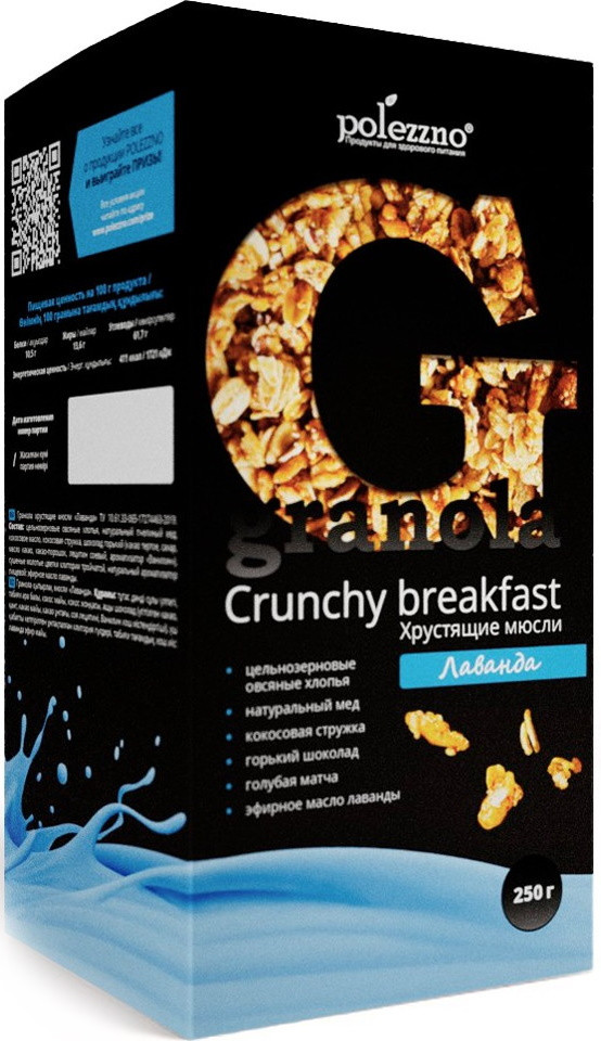 Polezzno Гранола со вкусом лавандыВ данный момент этот товар отсутствует в продаже. Возможно, у нас найдется аналогичный или похожий товар здесь. Срок годности до 28.11.2021 |