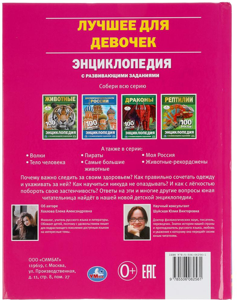 Эта занимательная энциклопедия расскажет юным принцессам, как правильно ухаживать за собой и за своими вещами, чем заниматься в свободное время, как красиво оформить свою комнату и составить образ на какое-нибудь мероприятие, а также много других интересных вещей. Яркие фотографии и удивительные факты увлекут маленьких читательниц и помогут им быстро, эффективно и с удовольствием усвоить новую информацию. Благодаря компактным размерам энциклопедию удобно брать с собой в поездки.