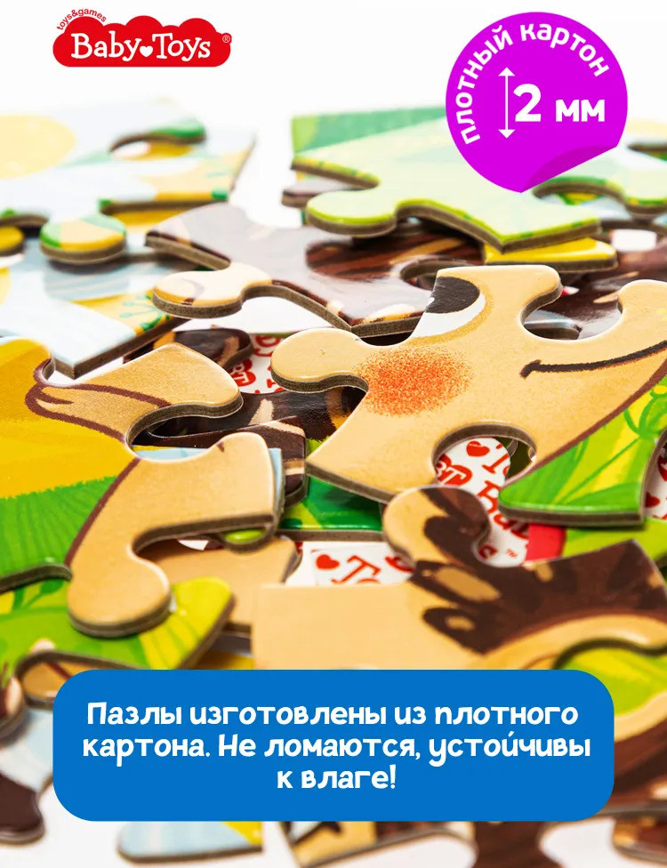 прочный картон, яркие и не маленькие по размеру пазлы