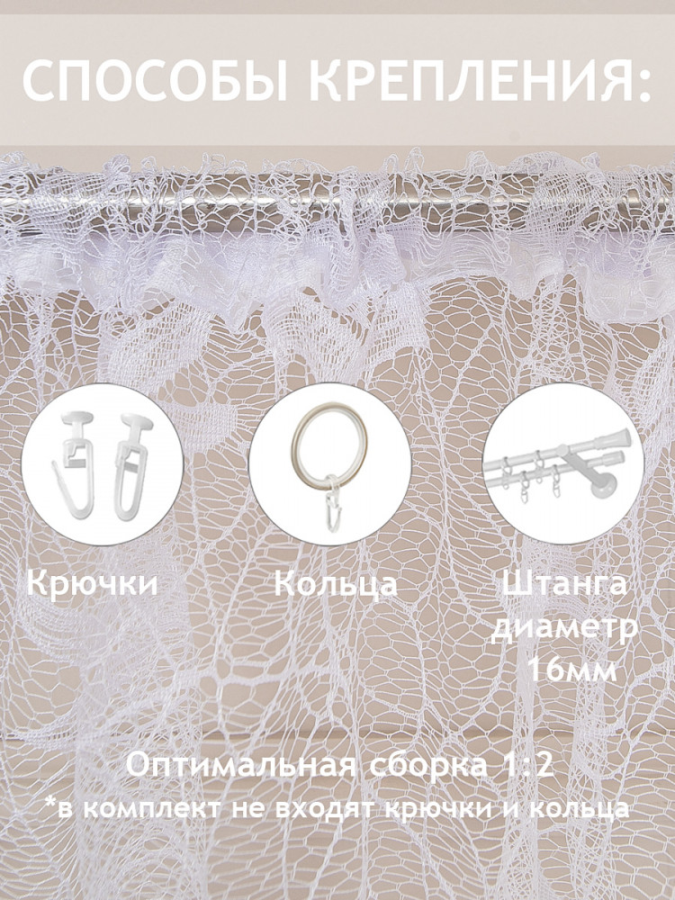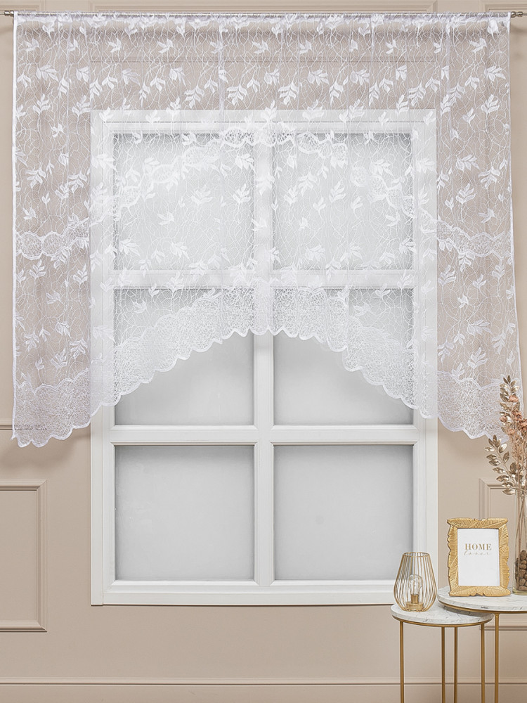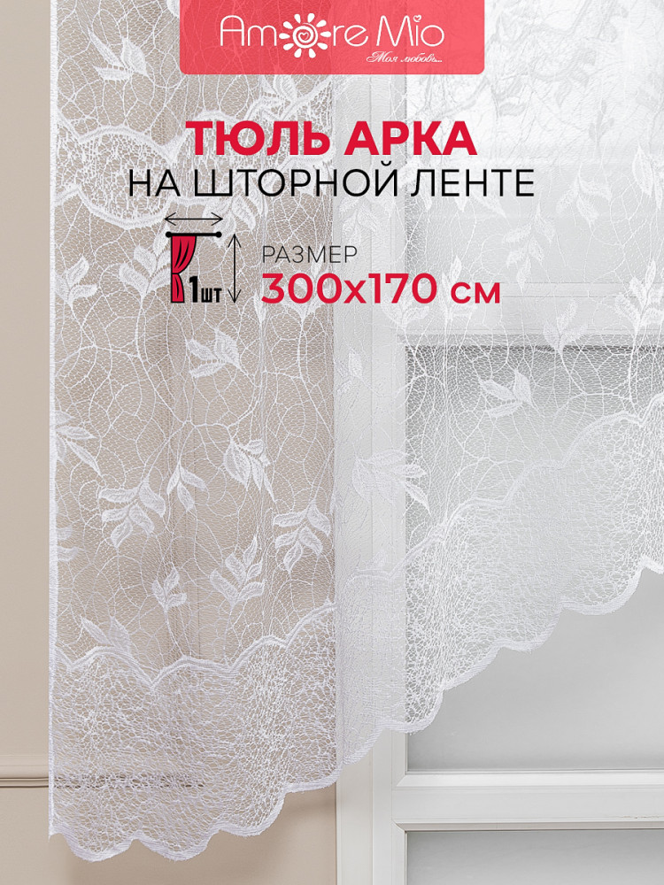 Тюлевая арка для кухни торговой марки «Amore Mio» — изготовлена из лёгкой, воздушной ткани и украшена изящным цветочным узором. Изделие будет прекрасно смотреться в классическом интерьере. Благодаря полукруглой форме штора расширит пространство небольшой кухни и откроет доступ к подоконнику. Изделие на шторной ленте и готово к использованию.