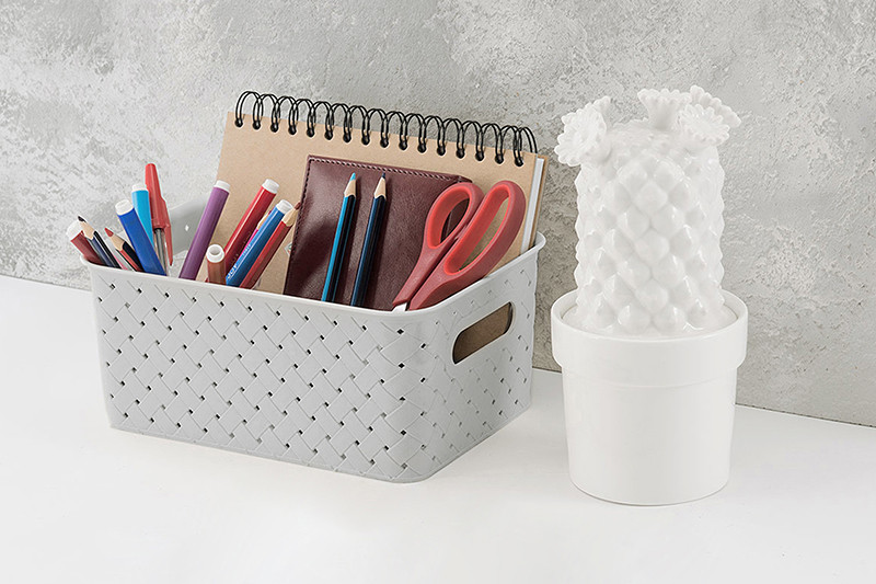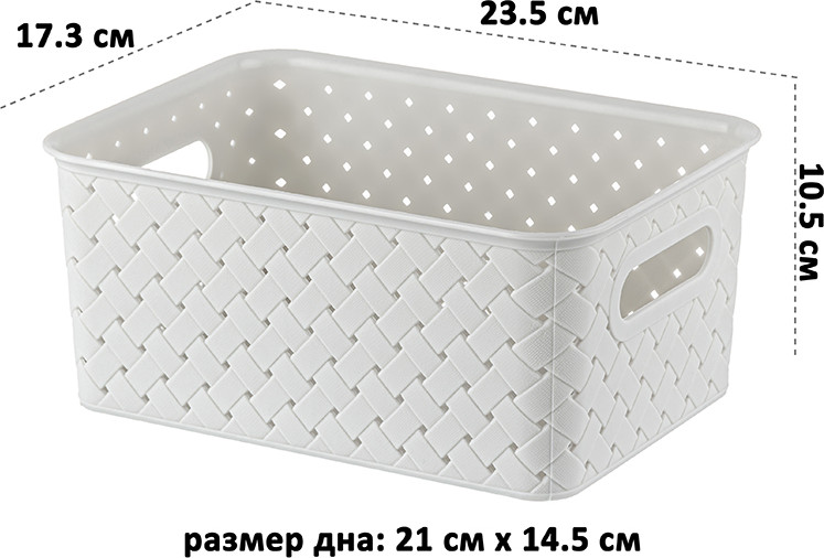 Мне подошел размер данной корзинки для мелких вещей. Пластик плотный. Удобные прорези для перемещения.