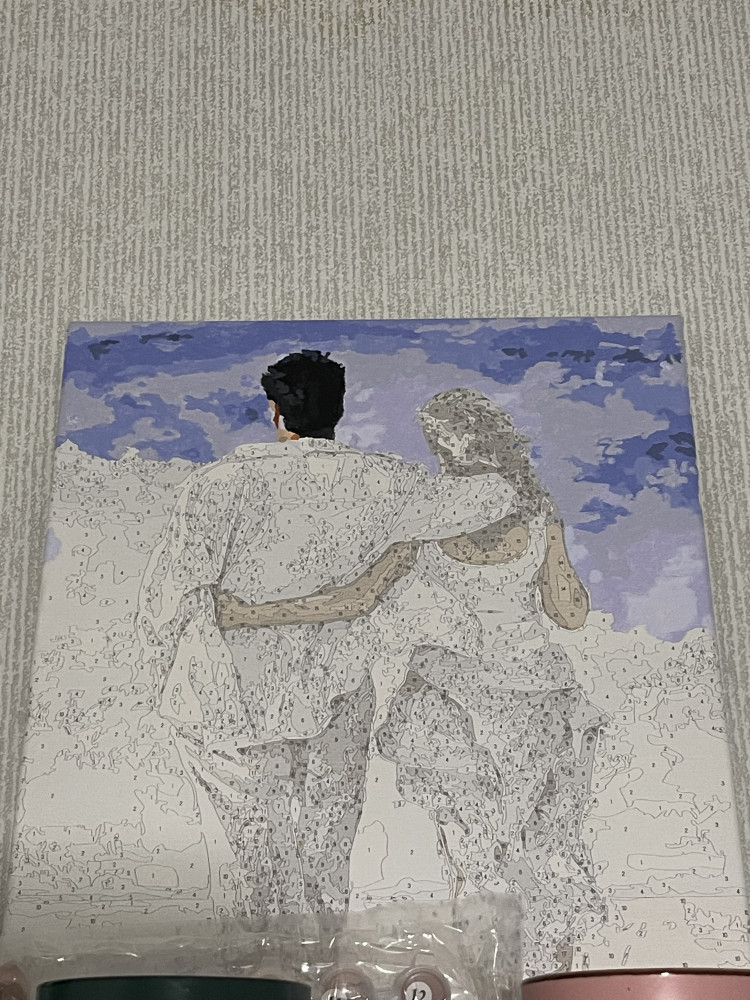 Пока в процессе закрашивания картины. По моему цвета немного другие, нежели которые представлены здесь и отличаются от того, что нарисовано на упаковке.