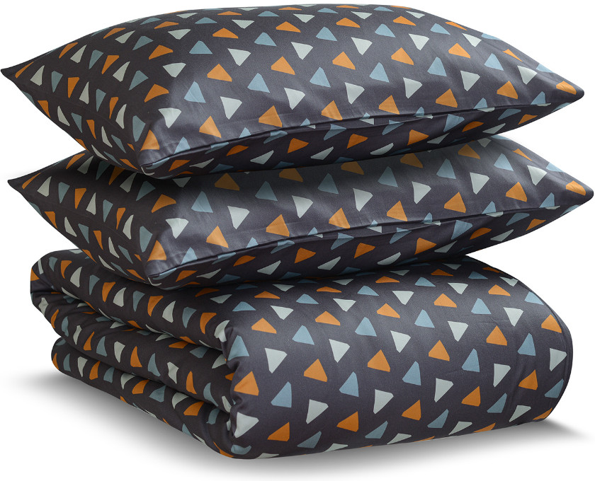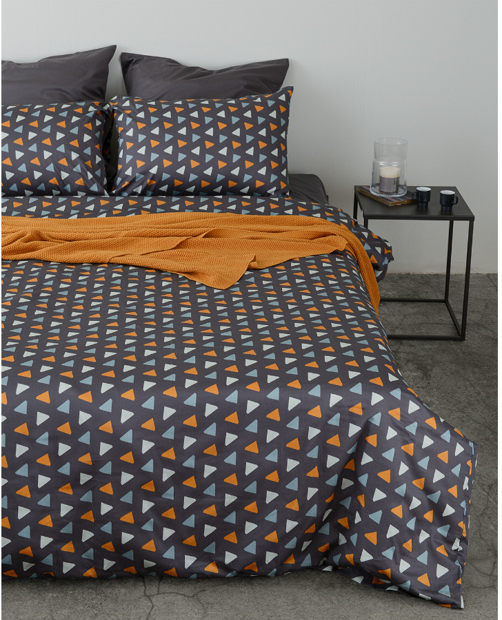 Графичный и яркий принт из геометрических фигур на мягко блестящем сатине для сохранения нежности плетения без потери прочности. Добавьте спальне немного природного уюта, и сны станут намного интереснее.